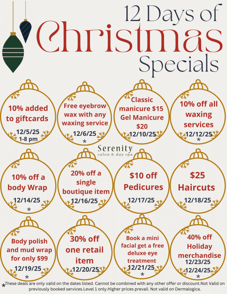 12 Days of Christmas-Discounts all of December for services and retail items.